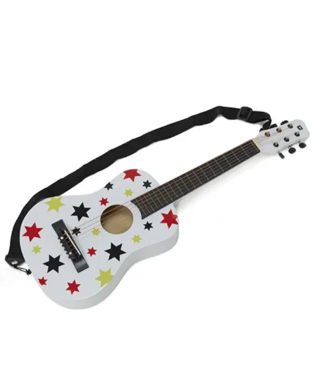 印有紅色、黑色和金色星星的漂亮結他 將激活小朋友的所有感官 學習在音樂世界中邁出第一步 琴弦非常逼真,就像一把真正的結他一樣 讓小朋友輕鬆學習, 愛上音樂