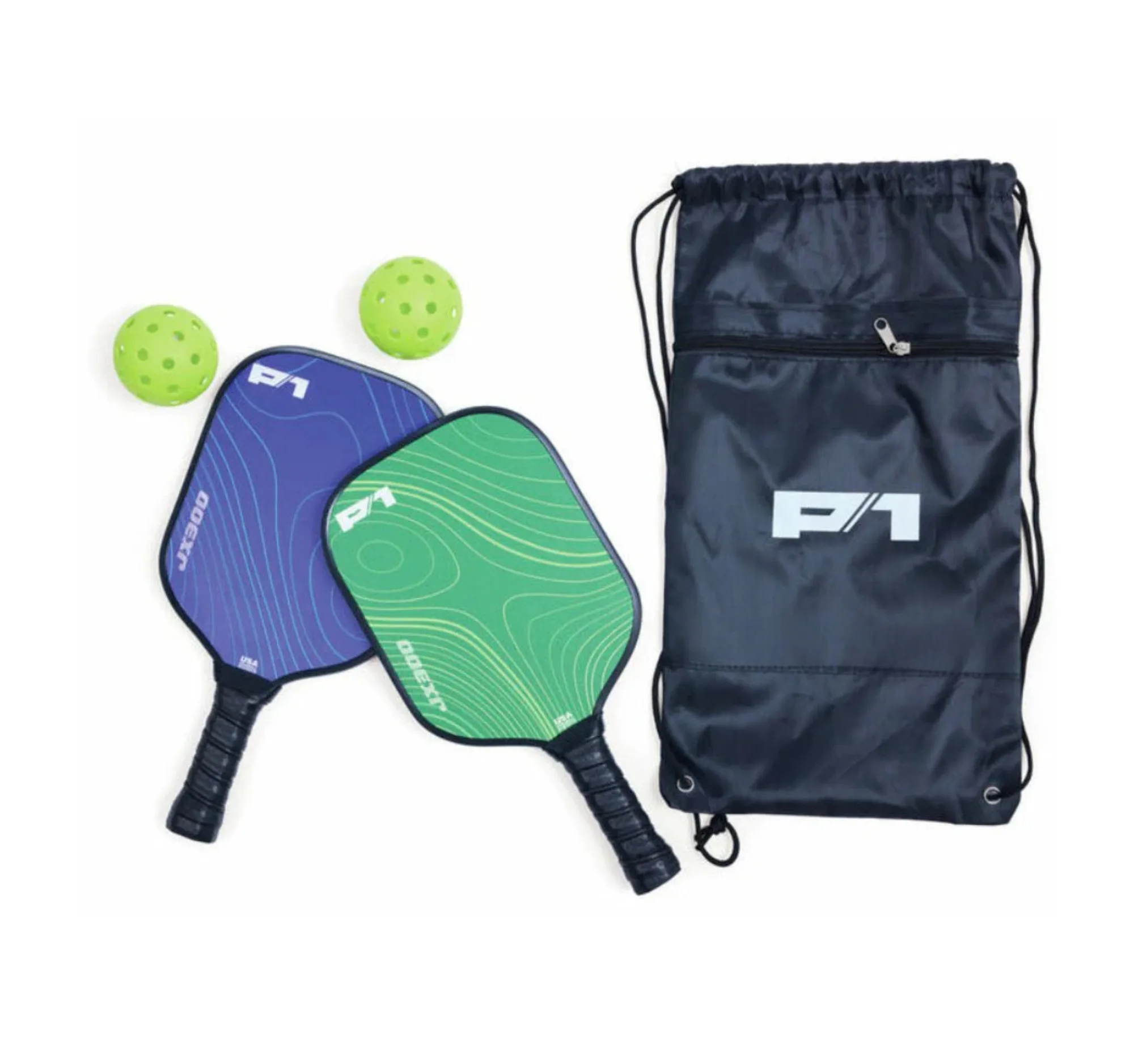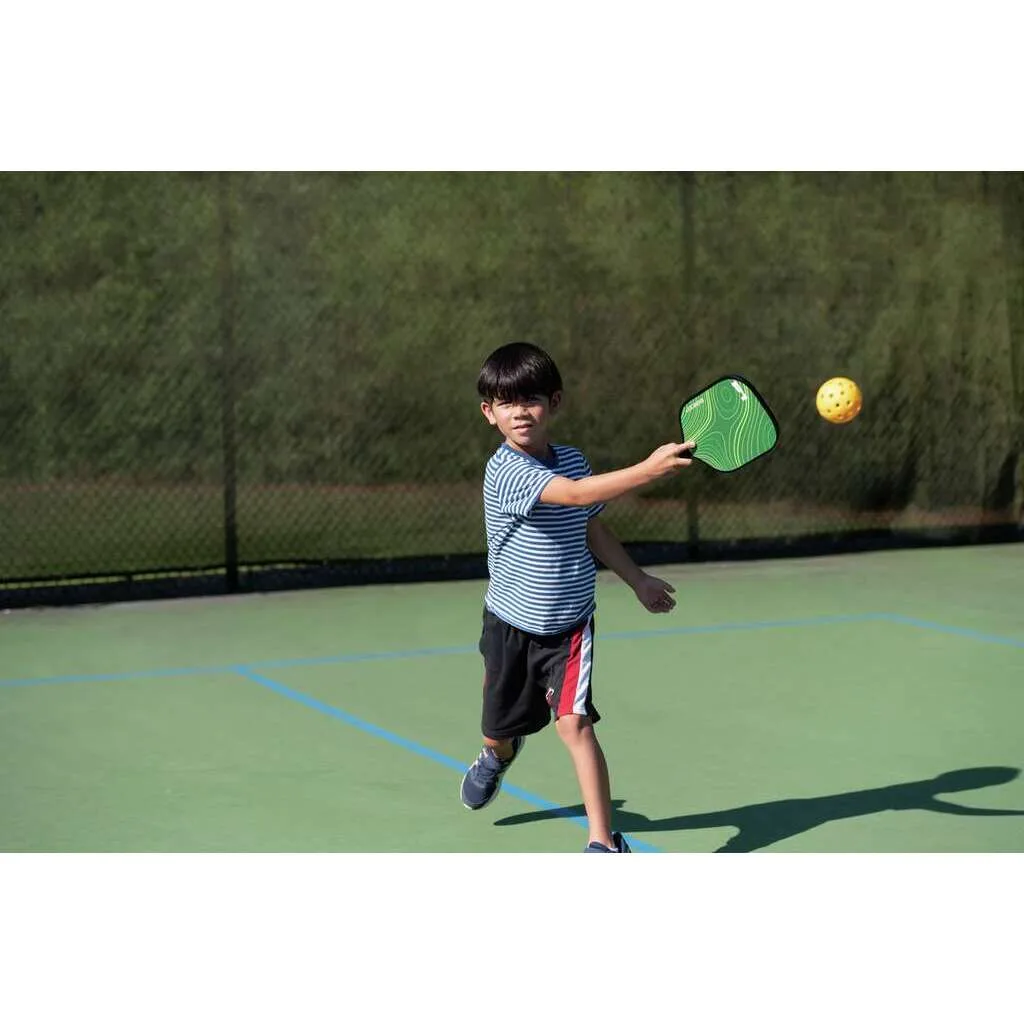 匹克球入門套裝 5 件套 配有兩個帶有防滑手柄的耐用木質球拍、 兩個 USPA 認可的匹克球和一個單肩背包,非常適合初學者 隨時可用戶外的活動 憑藉引人注目的槳葉設計,孩子們將充滿信心並準備好玩耍!