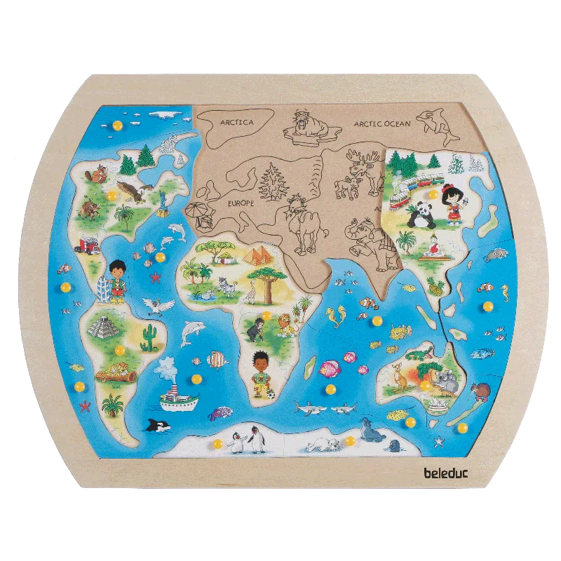 透過拼圖探索世界! 這拼圖是一種有趣且豐富多彩的方式,可以讓孩子們了解我們這個美麗的地球! 這個拼圖可以幫助孩子探索大洲、國家及其居民、地理的相關知識