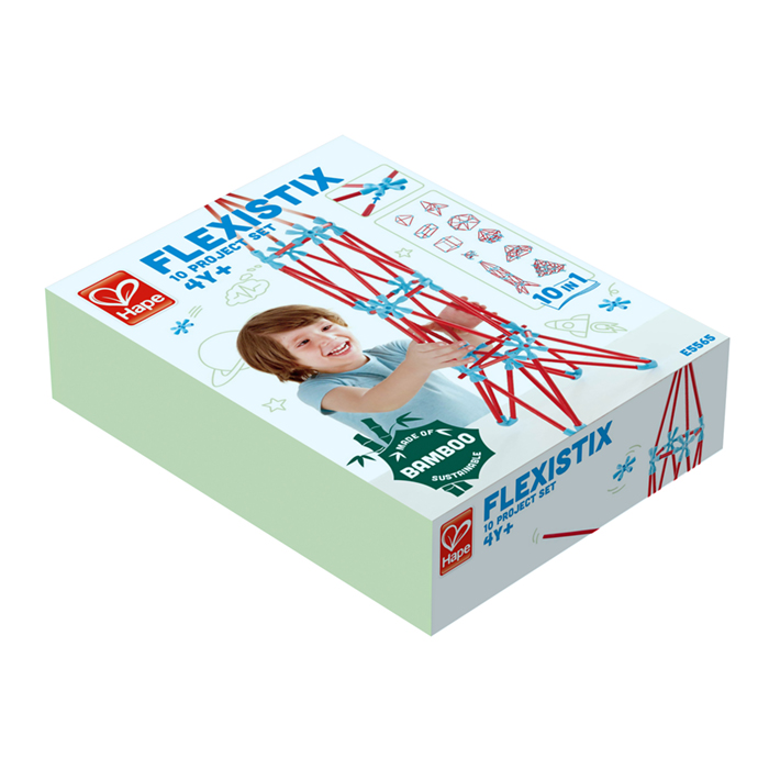 創意竹筷 – 十合一幾何 HAPE Flexistix Creativity Kit 用這款趣味的創意竹筷套裝搭建各種不同的形狀和結構 竹筷和靈活的連接件可以進行重組創造十種獨立的造型 鼓勵學童發揮想像力,自行創造各種結構