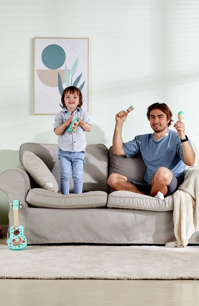 4 in 1 烏克麗麗組合Ukulele Set 組合包括烏克麗麗琴、沙球、鈴鼓和響板 小朋友可以組成樂隊演奏最喜歡的曲調 樂器非常適合培養音樂感,學習基本音符和節奏模式 同時促進手眼協調、聽覺和創造力技能 特別適合親子時間,派對活動 尺寸特別適合學習樂器的小孩子